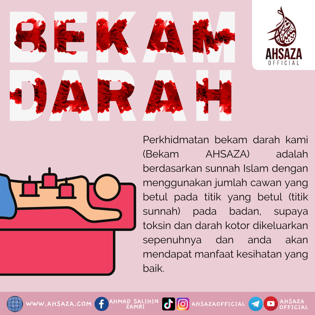 Kami di AHSAZA OFFICIAL Setiu Terengganu menyediakan rawatan bekam seperti Bekam Luncur, Bekam Angin dan Bekam Darah. Insya Allah teknik bekam yang digunakan tidak menyakitkan dan melegakan.